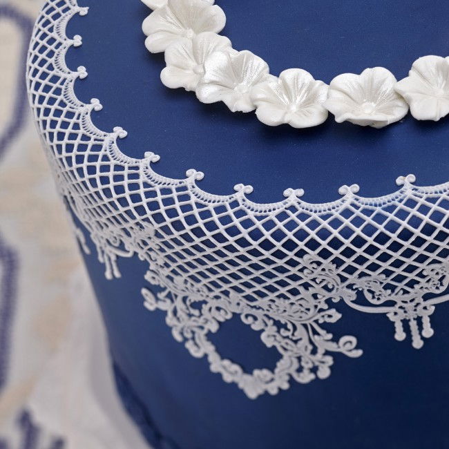 Banda din silicon alimentar pentru realizarea dantelelor comestibile, utilizate la decorarea torturilor, topurilor de cupcakes, biscuitilor, prajiturilor sau altor produse de cofetarie.