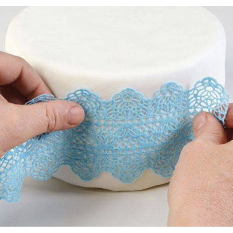 Banda din silicon alimentar pentru realizarea dantelelor comestibile, utilizate la decorarea torturilor, topurilor de cupcakes, biscuitilor, prajiturilor sau altor produse de cofetarie.