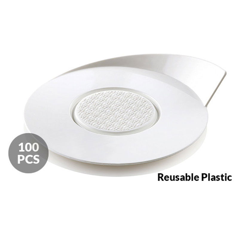Baze prezentare tip farfuriuta, de forma rotunda, din material plastic alimentar reutilizabil, pentru expunerea si servirea de monoportii, prajituri, alte produse mici, dulci sau sarate.