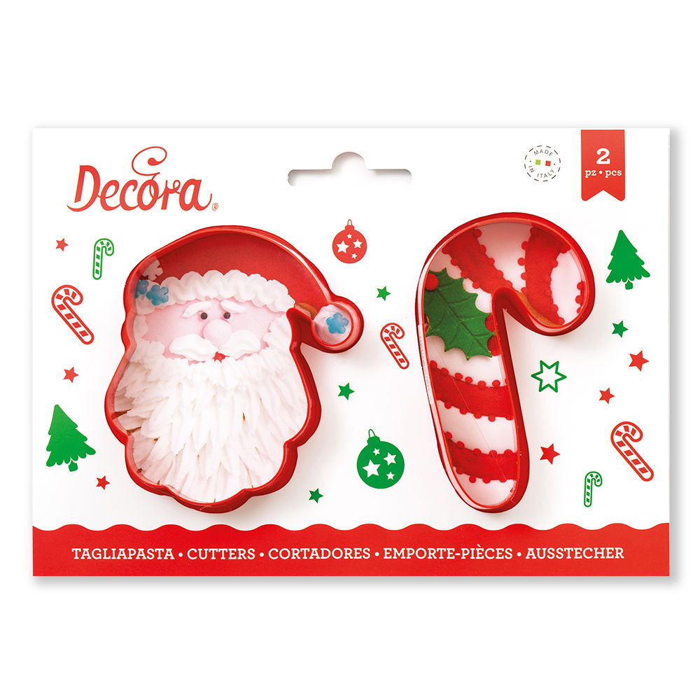 Biscuiti sau Decoruri Craciun - Decupatoare Plastic Mos Craciun, Candy Cane Ø 8.5 x H 2 cm, Set 2 Buc