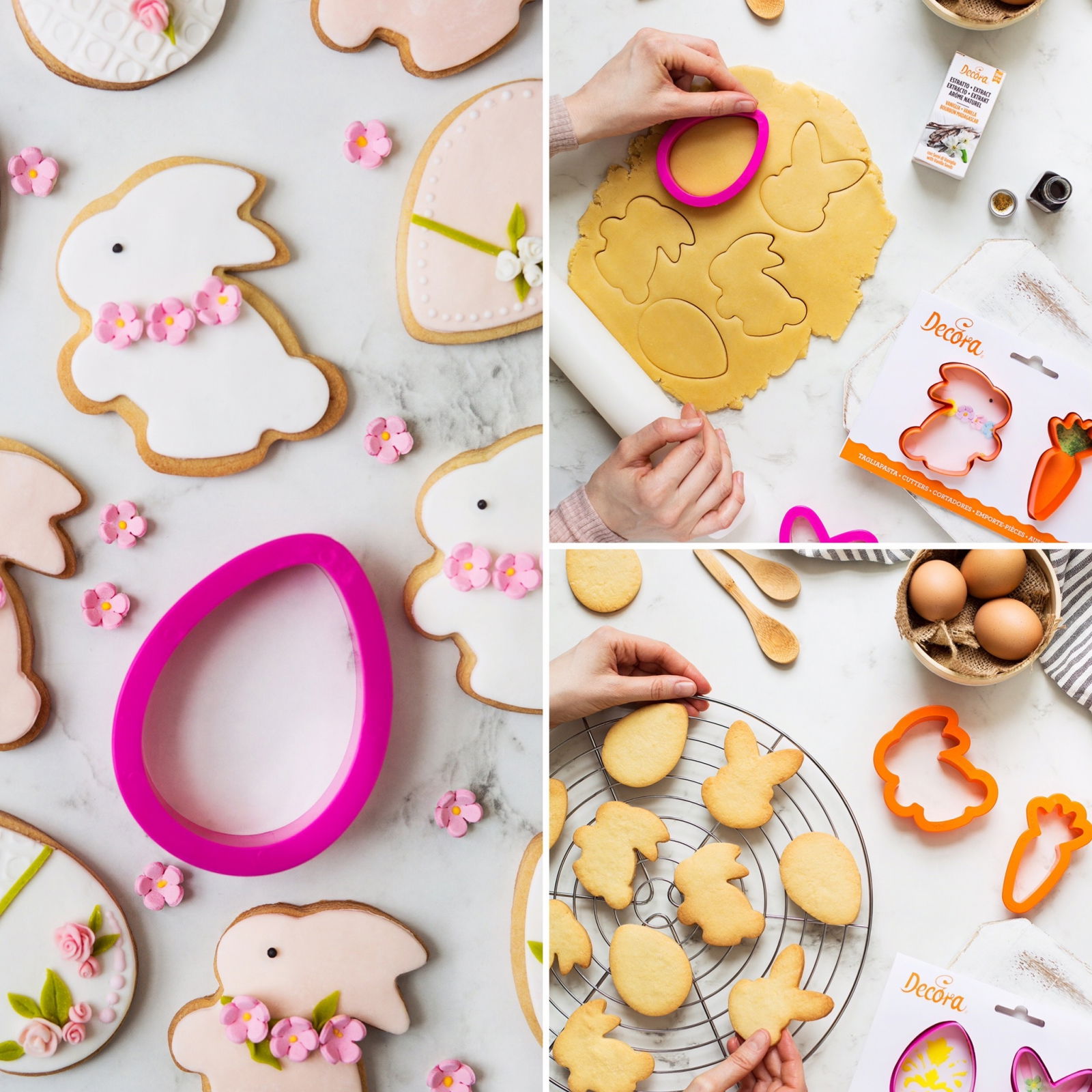 Biscuiti sau Decoruri Paste - Decupatoare Plastic Ou 8 x 5 x H 2 cm, Cap de Iepuras 8.5 x 6 x H 2 cm, set 2 Buc