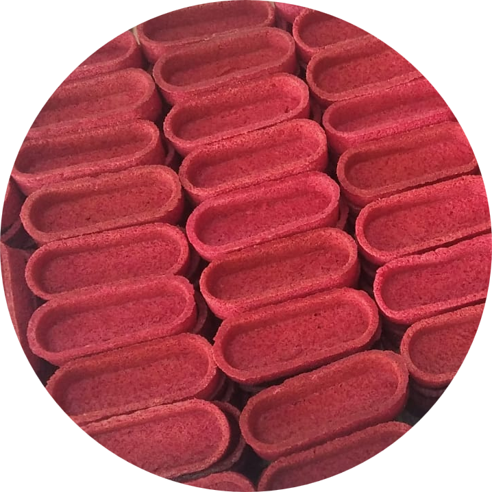 Produs bine copt forma rotunda neteda. Suprafata lucioasa specifica produsului. Culoare rosie, uniforma, rumena. Fara diferentiere fata de coaja, cu pori uniformi, caracteristic unui produs bine copt, fara aglomerari de faina.