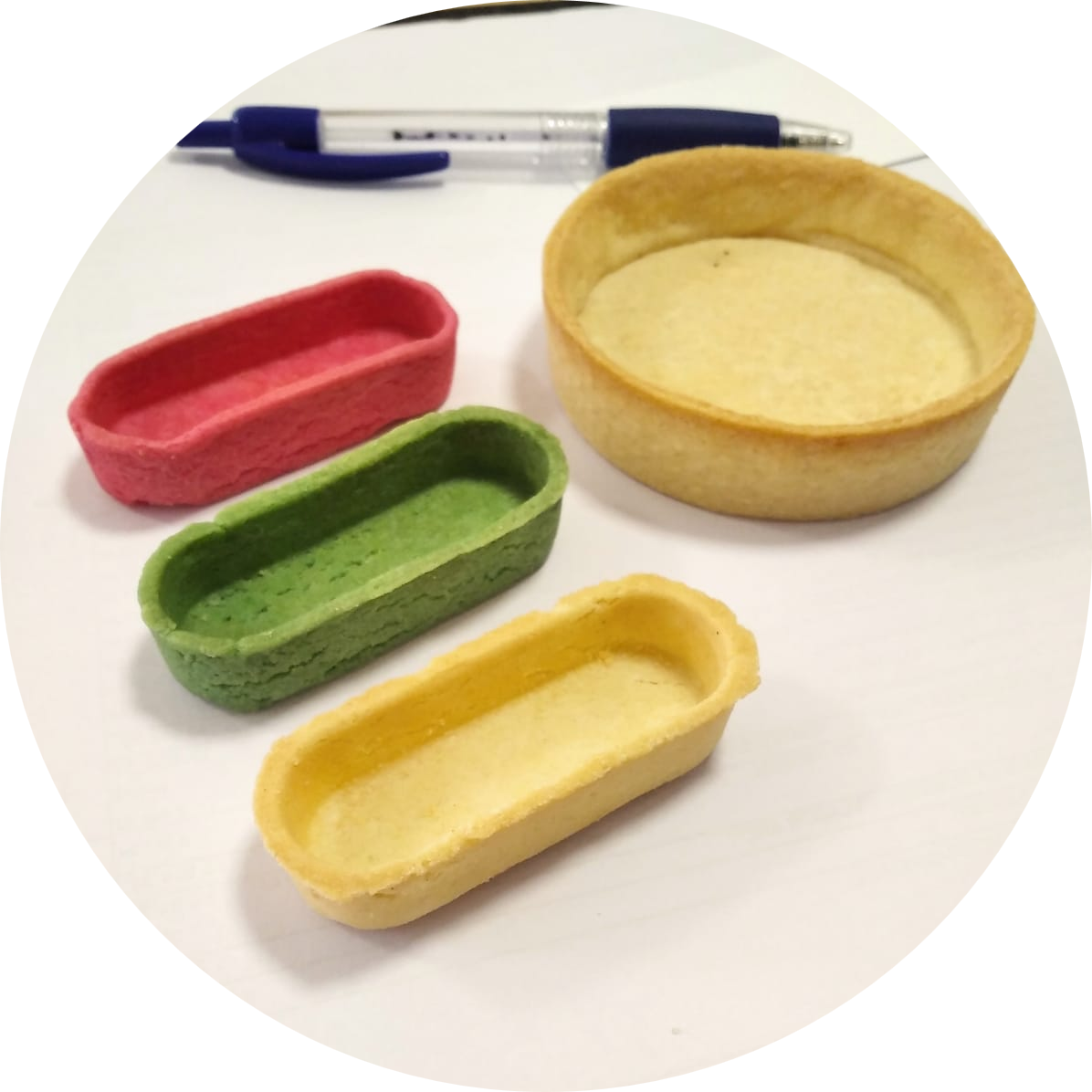 Ingrediente: Faina de GRAU 650, Margarina, apa, emulgatori, sare (0.5%), antioxidant natural (tocoferol-extract bogat), corector de aciditate (acid citric), aroma naturala, colorant (carotene), zahar pudra, aroma vanilie, apa, colorant clorofila.