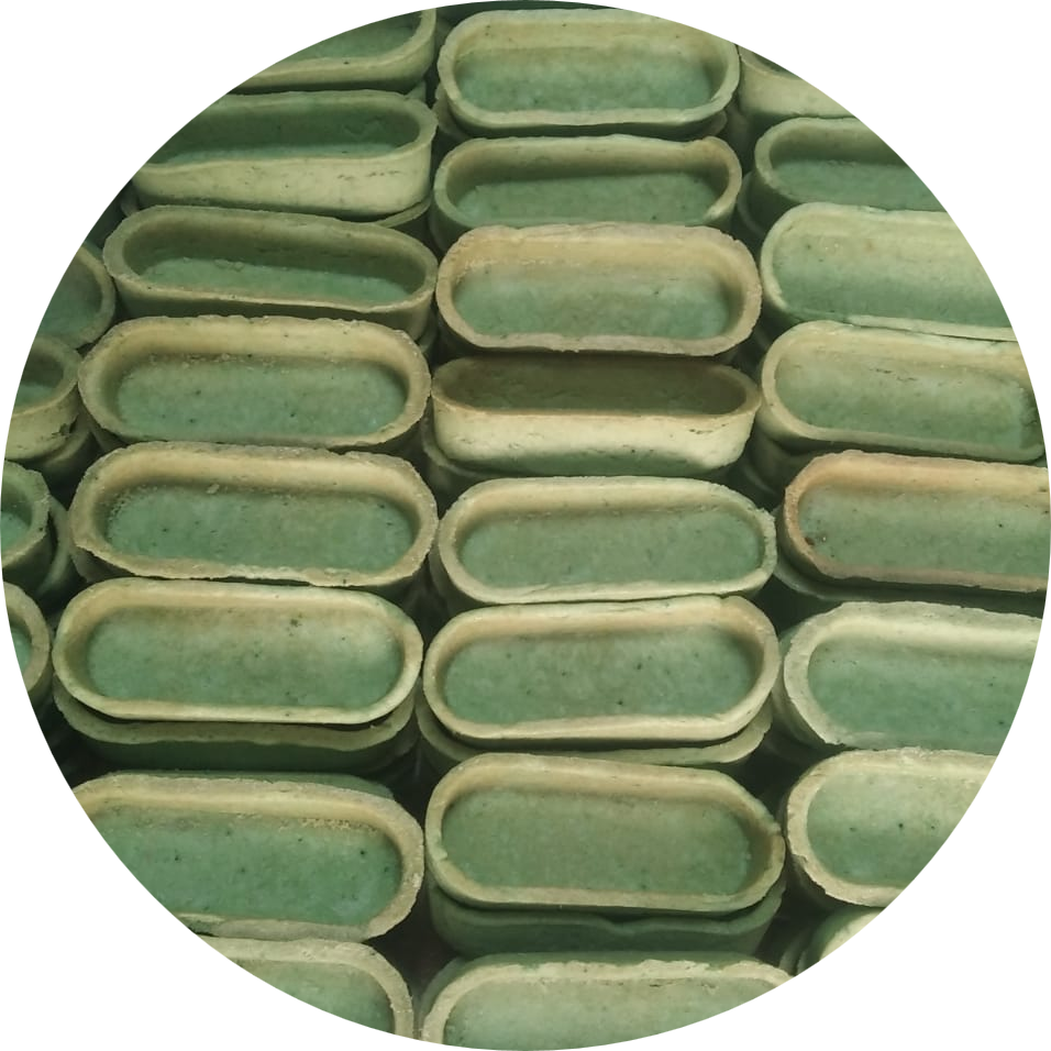 Produs bine copt forma rotunda neteda. Suprafata lucioasa specifica produsului. Culoare verde, uniforma, rumena. Fara diferentiere fata de coaja, cu pori uniformi, caracteristic unui produs bine copt, fara aglomerari de faina.