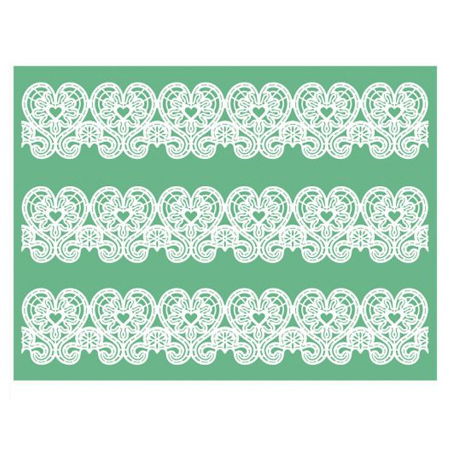 Covoras din silicon alimentar pentru realizarea dantelelor comestibile, utilizate la decorarea torturilor, topurilor de cupcakes, biscuitilor, prajiturilor sau altor produse de cofetarie.