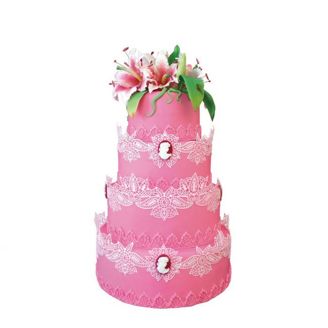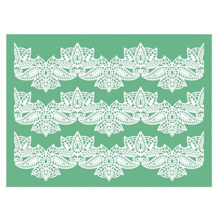 Covoras din silicon alimentar pentru realizarea dantelelor comestibile, utilizate la decorarea torturilor, topurilor de cupcakes, biscuitilor, prajiturilor sau altor produse de cofetarie.