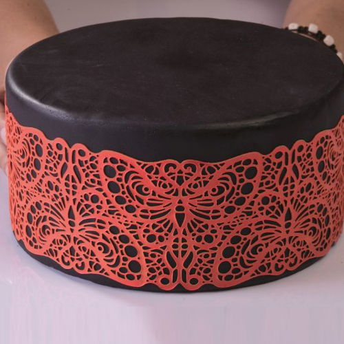 Covoras din silicon alimentar pentru realizarea dantelelor comestibile, utilizate la decorarea torturilor, topurilor de cupcakes, biscuitilor, prajiturilor sau altor produse de cofetarie.