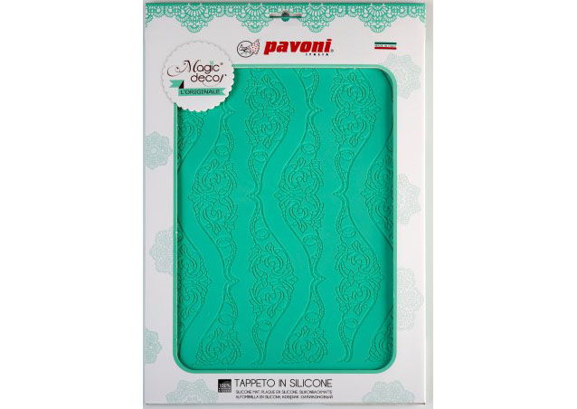 Covoras din silicon alimentar pentru realizarea dantelelor comestibile, utilizate la decorarea torturilor, topurilor de cupcakes, biscuitilor, prajiturilor sau altor produse de cofetarie.