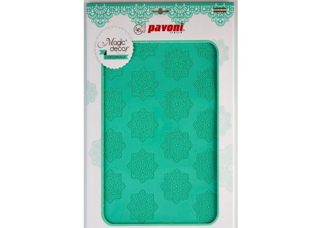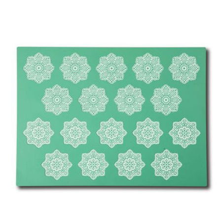 Covoras din silicon alimentar pentru realizarea dantelelor comestibile, utilizate la decorarea torturilor, topurilor de cupcakes, biscuitilor, prajiturilor sau altor produse de cofetarie.