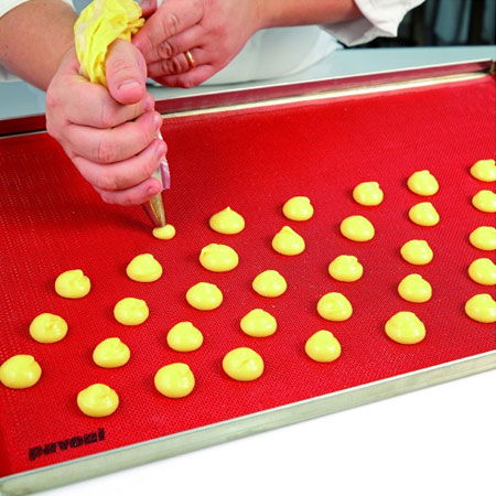 Covoras antiaderent microforat, din fibra de sticla impregnata si acoperita cu silicon alimentar pe ambele parti.