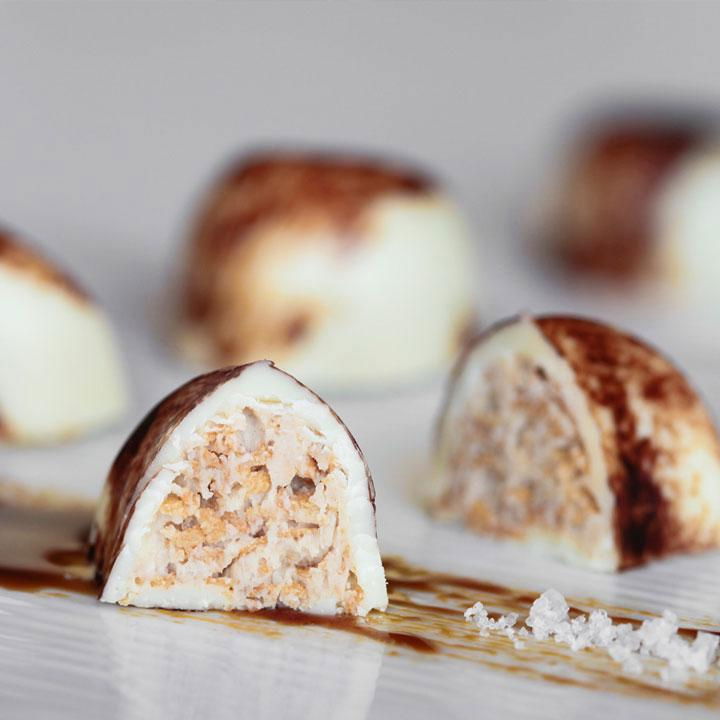 Pralin Delicrisp Caramel Fleur de Sel este o pasta de praline delicioasa din ciocolata alba, cu aroma de caramel sarat si crocant "crepe crunch".