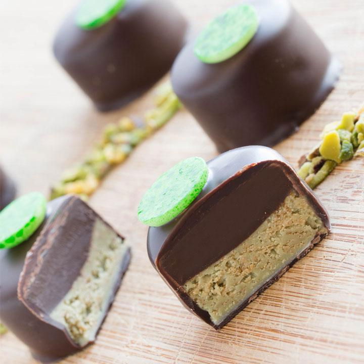 Pralin Delicrisp Pistacchio este o crema crocanta cu fistic si pasta de ciocolata alba cu bucati crocante cu unt, ideala pentru prepararea produselor de patiserie, cofetarie si inghetata.