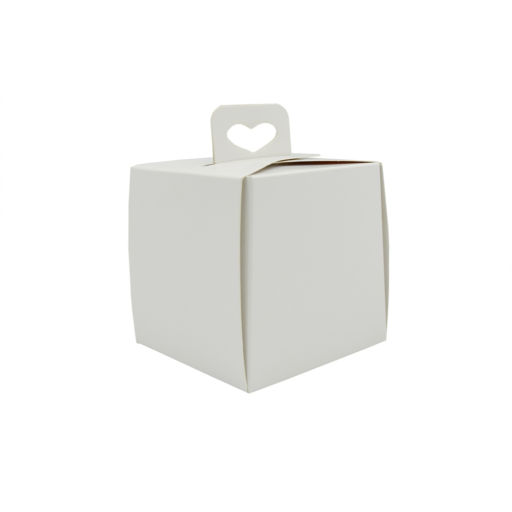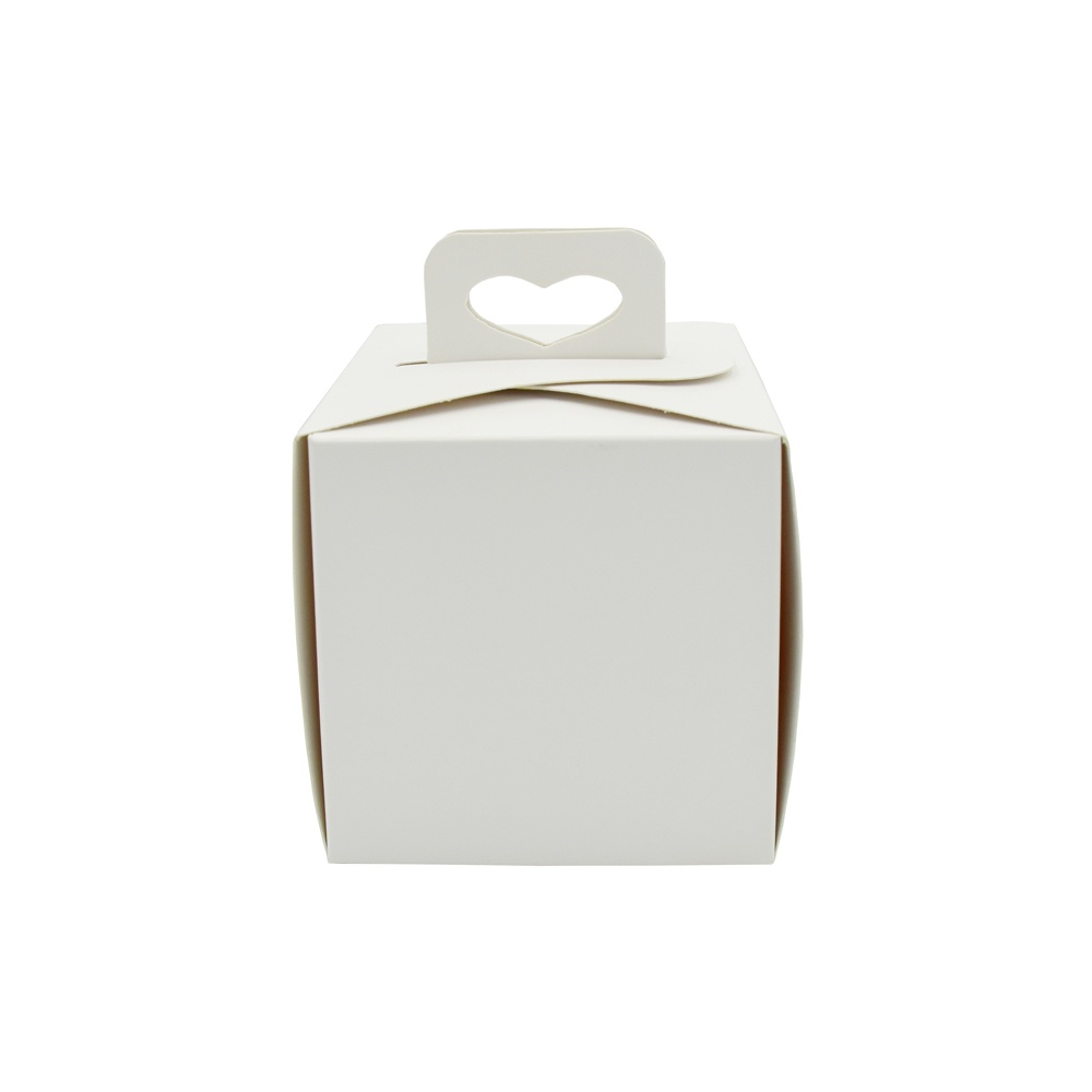 Cutie Monoportii Patrata cu Maner, din Carton Alb, pentru servirea si transportarea deserturilor si produse alimentare.
