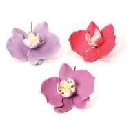 Flori de orhide realizate manual din zahăr și cu coloranți obținuți din surse naturale.