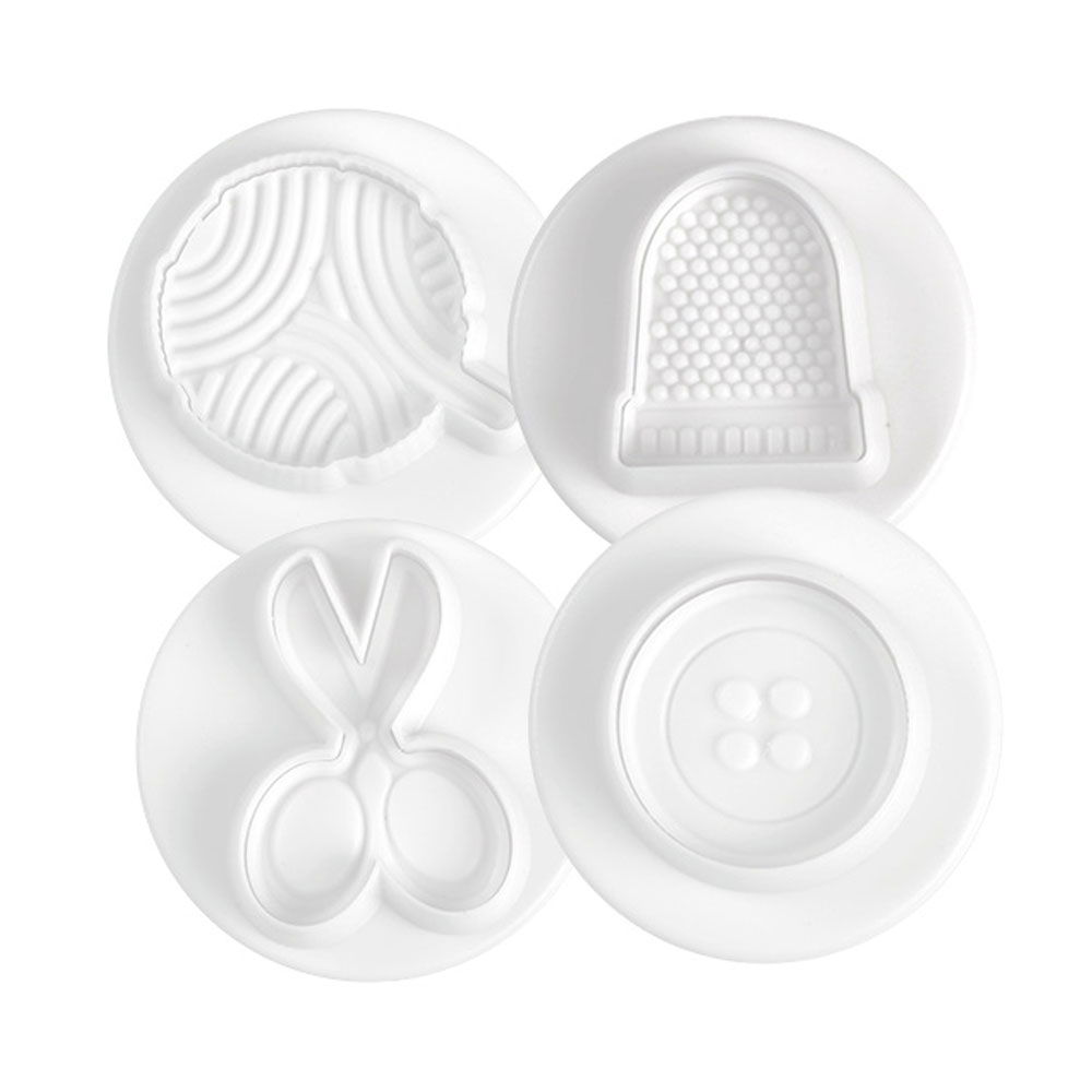 Set 4 decupatoare cu extractor, din material plastic, pentru realizarea biscuitilor si decorurilor din pasta de zahar sau fondant.