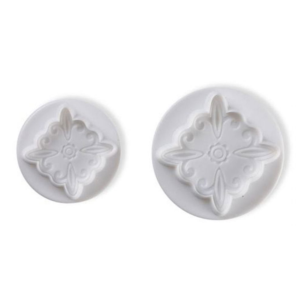 Pavoni Dantele sau Decor Patrat 4.5 si 6 cm - Decupatoare Plastic cu Extractor, Set 2 Buc