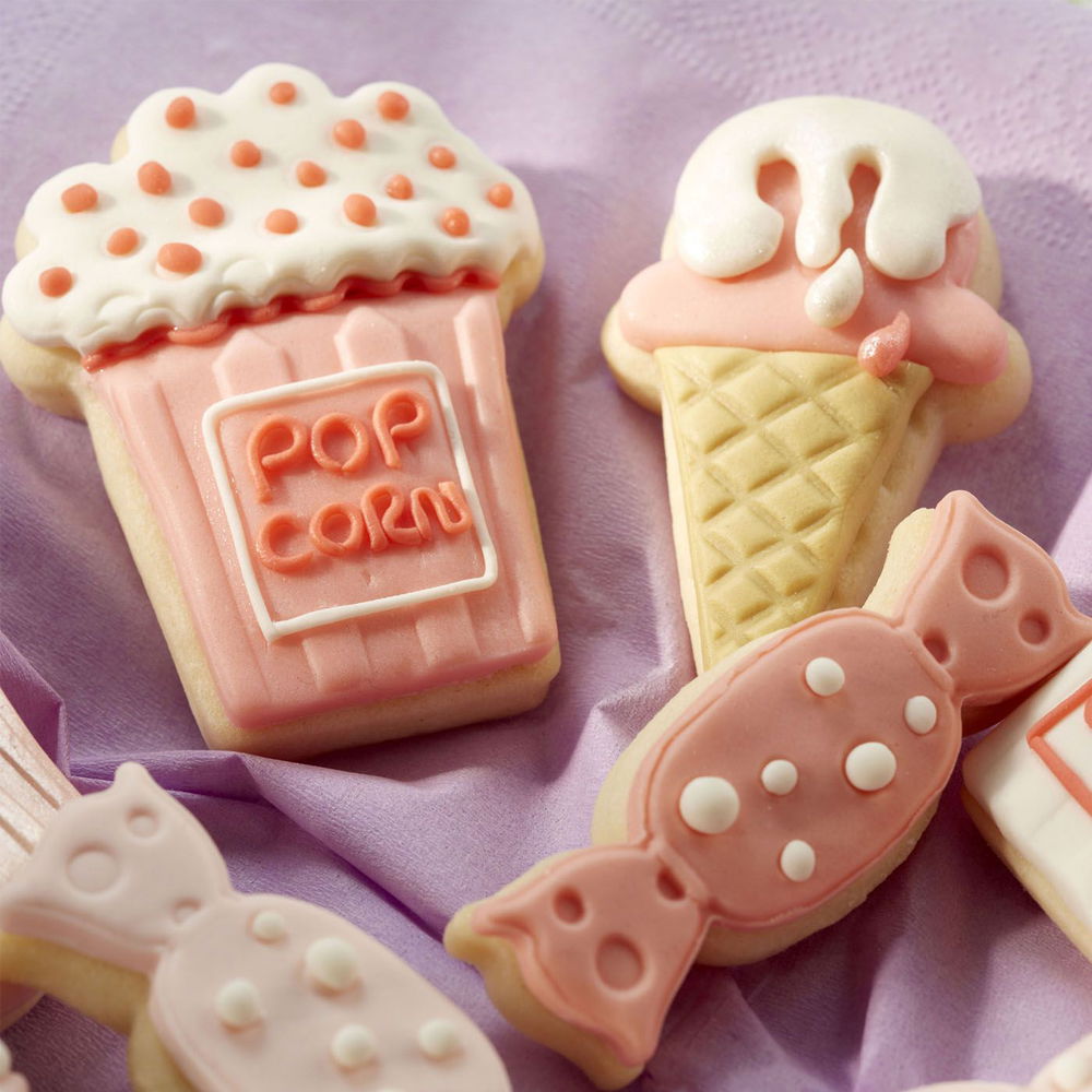 Model: 4 forme diferite - Cutie popcorn, Cupcake, Inghetata si Bomboana.