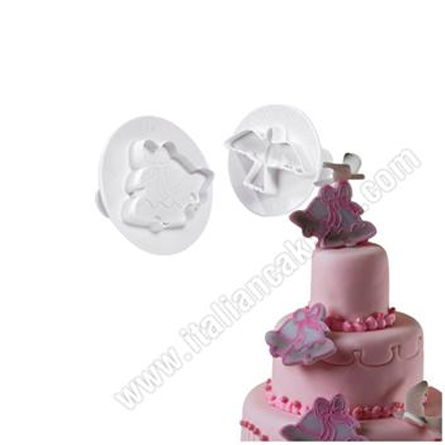 Set 2 decupatoare cu extractor, din material plastic, pentru realizarea decorurilor din pasta de zahar sau fondant.