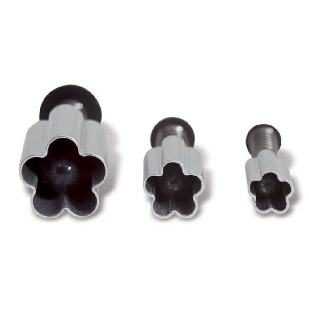 Set 3 decupatoare cu extractor din metal pentru realizarea decorurilor din pasta de zahar sau fondant.