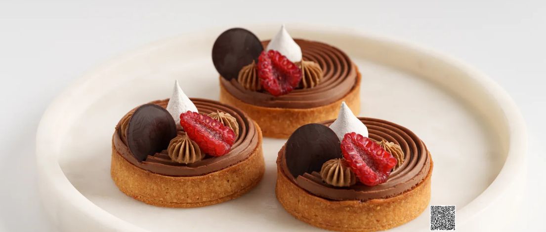 The Chocolate and Raspberry Tart is one of those — the perfect balance between crunch, creaminess, and fruity freshness. A classic combination, reimagined in modern Puratos style.