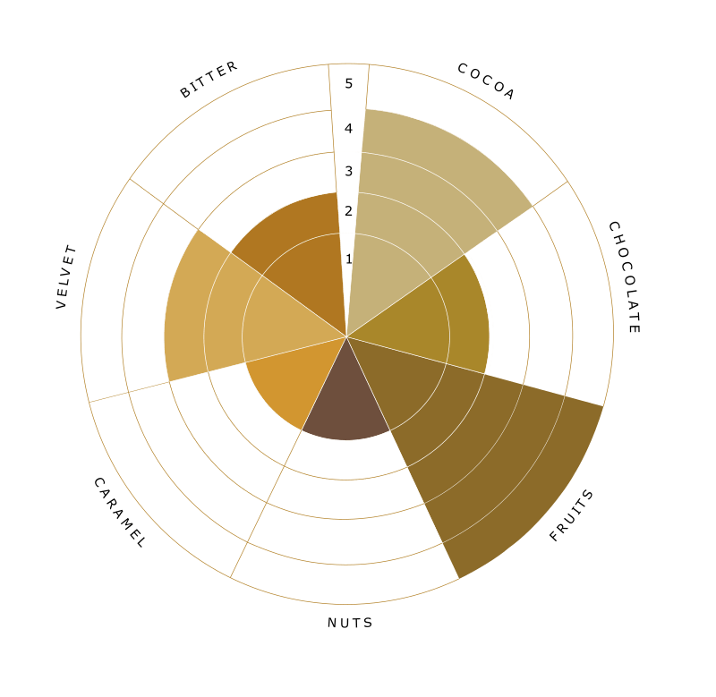 Nivel Ph: 5.2%-6.0%. Nivel aroma cacao: mediu.