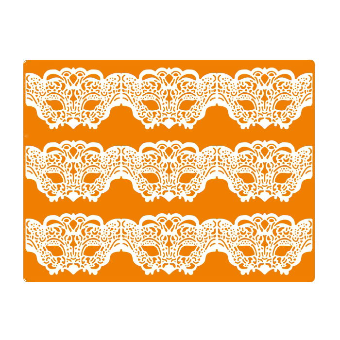 Covoras din silicon alimentar pentru realizarea dantelelor comestibile, utilizate la decorarea torturilor, topurilor de cupcakes, biscuitilor, prajiturilor sau altor produse de cofetarie.
