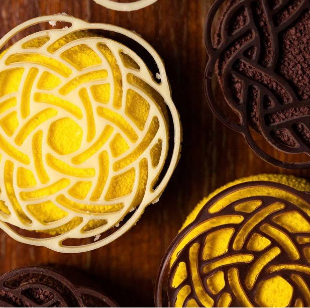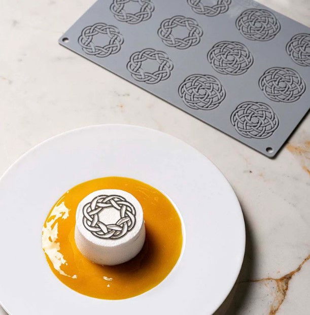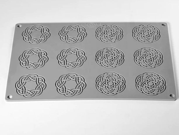 Formă din silicon alimentar, cu 12 cavități, pentru realizarea decorurilor sau a produselor de gastronomie moderne.