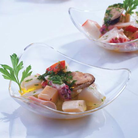 Set Farfuriute triunghiulare, din material plastic alimentar, pentru expunerea diverselor produse mici, dulci sau sarate, in cazul organizarii unui Bufet sau a unui Candy Bar.