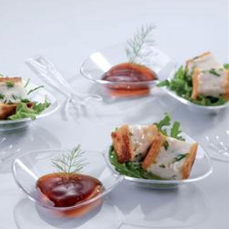 Set Farfuriute triunghiulare duble, din material plastic alimentar, pentru expunerea diverselor produse mici, dulci sau sarate, in cazul organizarii unui Bufet sau a unui Candy Bar.