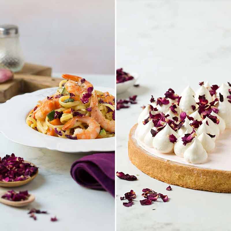 Petale de trandafiri uscati si gust floral. Petalele de trandafiri imbunatatesc aspectul si gustul dressing-urilor pentru salata, al preparatelor din legume, salatelor, preparatelor din oua, carnii albe, preparatelor din peste sau fructe de mare si deserturilor.
