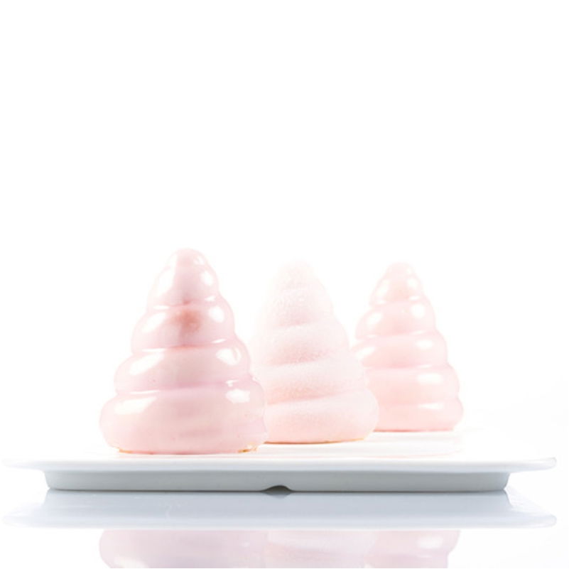 Forma rezista la temperaturi cuprinse intre - 40°C si +230°C si are grad mare de antiaderenta, garantand o perfecta extragere a produsului din cavitati, dupa coacere sau congelare.