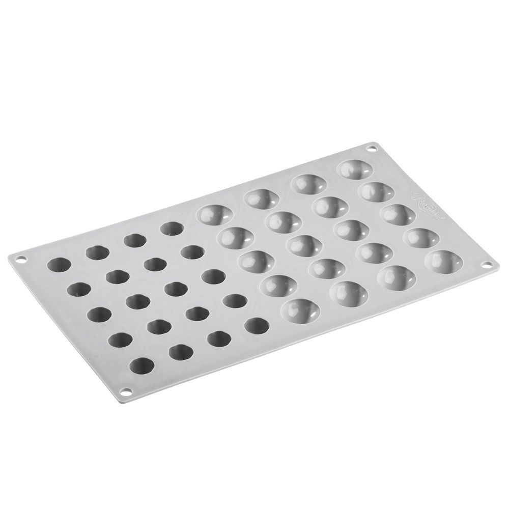 Forma din silicon alimentar, cu 40 cavitati, pentru realizarea decorurilor sau a produselor de gastronomie moderne.