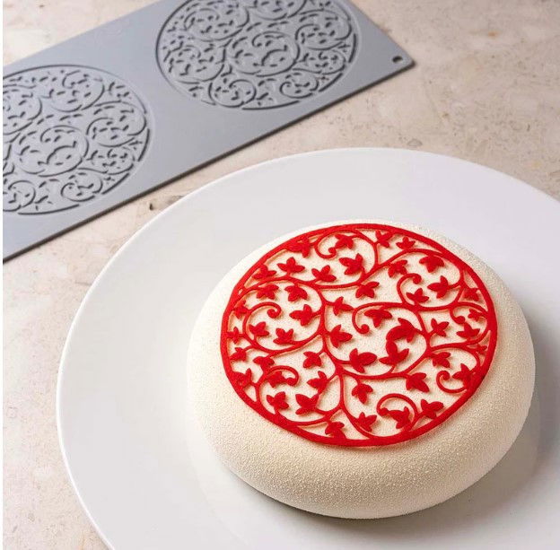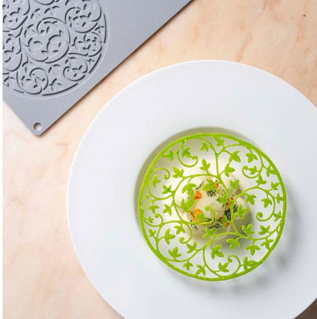 Formă din silicon alimentar, cu 2 cavități, pentru realizarea decorurilor sau a produselor de gastronomie moderne.