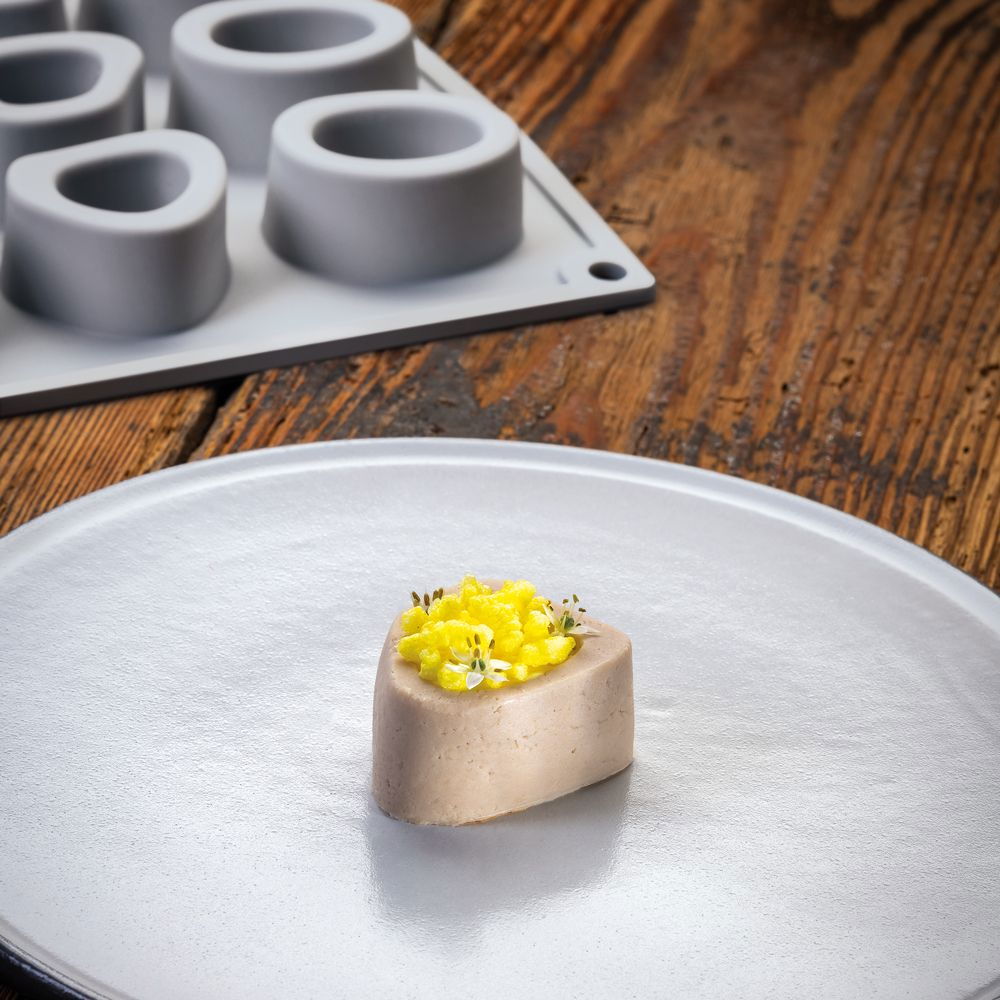 Forma din silicon alimentar, cu 15 cavitati, pentru realizarea decorurilor sau a produselor de gastronomie moderne.