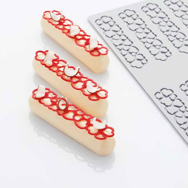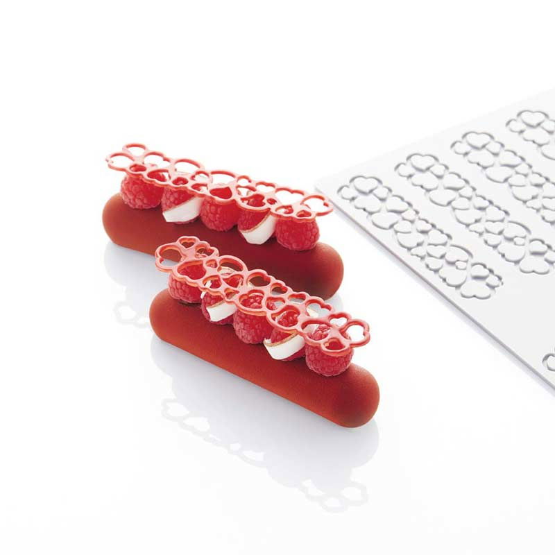 Formă din silicon alimentar, cu 10 cavități, pentru realizarea decorurilor sau a produselor de gastronomie moderne.