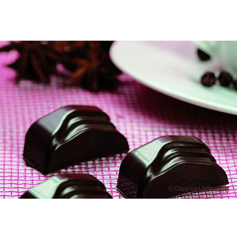 Forma din silicon alimentar pentru realizarea de: praline din ciocolata, bomboane din jeleu, mousse-uri, aspic, minideserturi sau cuburi de gheata speciale pentru cocktail-uri.