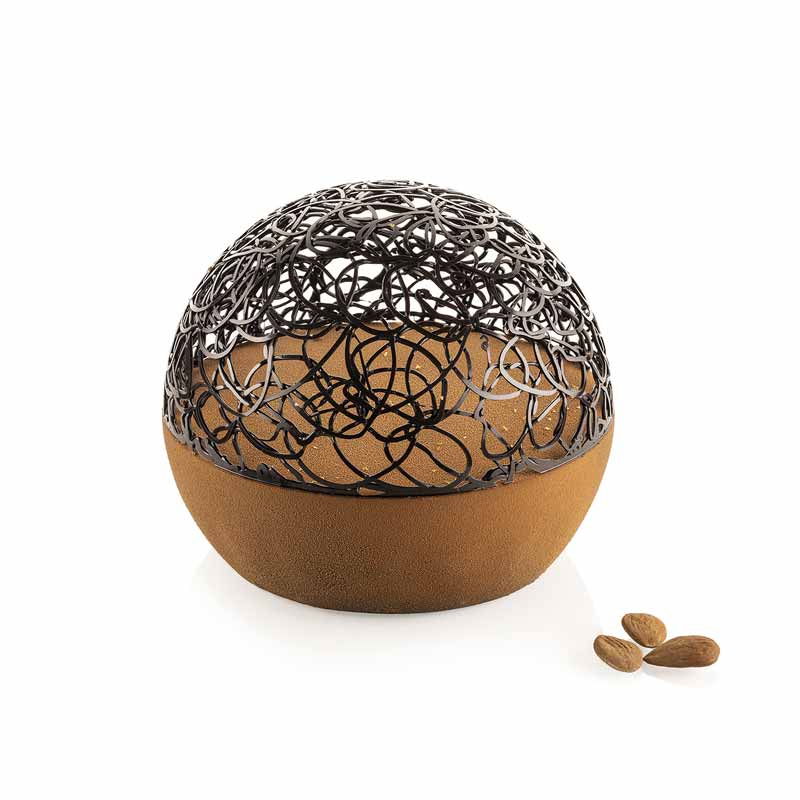 Kit Choco Globe vine cu o matriță TritanTM, un material inovator care garantează o durabilitate și siguranță excelentă. Oferă crearea unui înveliș de ciocolată temperat strălucitor și personalizabil care se potrivește perfect cu tortul creat cu matrița din silicon.