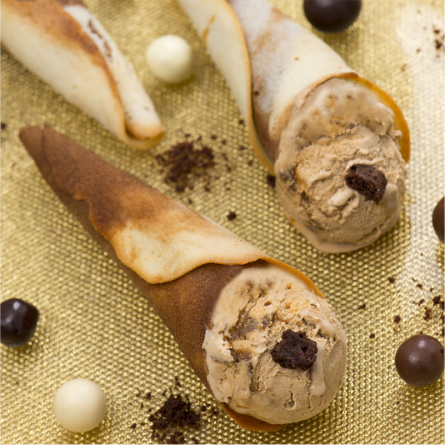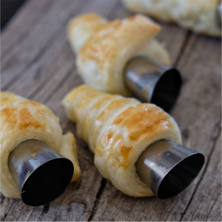 Cu aceste forme conice sunt suficiente cateva gesturi simple pentru a prepara rulouri, cannoli sau alte produse de forma conica, ce vor fi umplute dupa coacere si racire.