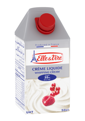 Ideala pentru incorporarea in creme, creatii inedite realizate cu posuri, frisca naturala de la Elle Vire este o frisca lichida UHT de calitate superioara care asigura rezultate consistente si stabilitate pe perioade lungi de timp.