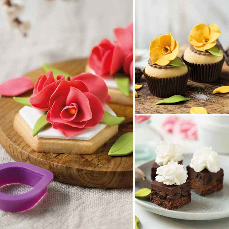 Kit format din 8 Decupatoare din material plastic, 1 ustensila pentru modelare pasta de zahar si tehnici de lucru pentru realizarea Florilor de Primavara, din pasta de zahar.