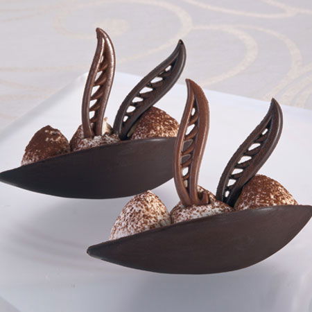 Pentru o corecta si completa extractie a decorurilor din matrite este necesara utilizarea unei ciocolate mai fluide, cu un continut mai mare de unt de cacao.