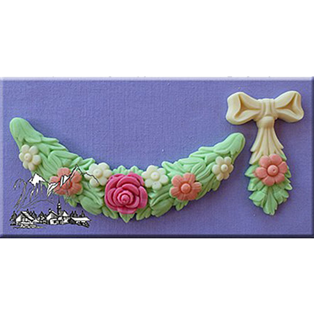 Cu ajutorul acestui mulaj obtineti, foarte rapid, 2 tipuri de decoruri cu ghirlande flori, dimensiuni diferite, pentru Torturi, Cupcakes sau alte tipuri de produse.