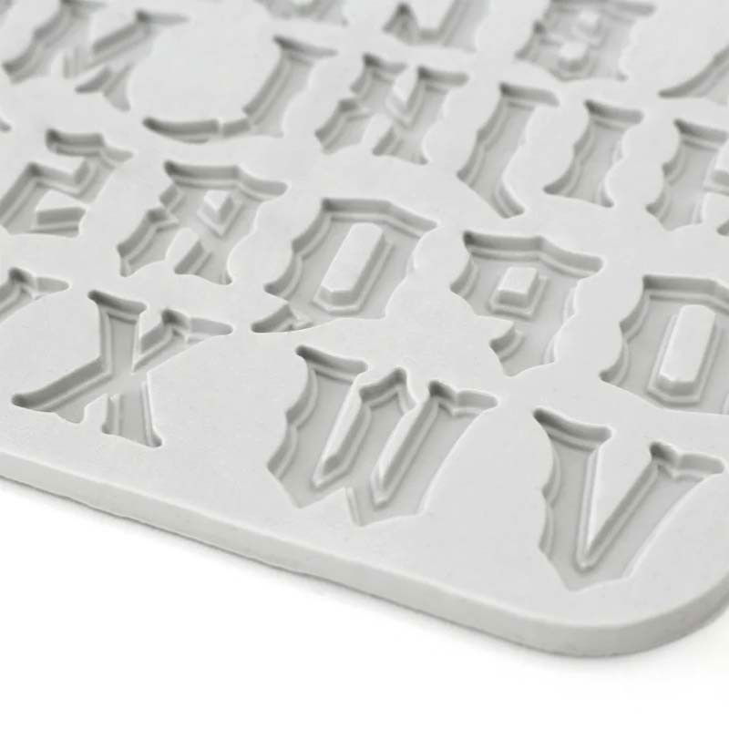 Mulaj din silicon alimentar, pentru realizarea literelor din pasta de zahar, fondant, martipan, ciocolata, izomalt...
