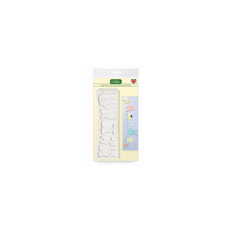 Cu ajutorul acestui mulaj obtineti, foarte rapid, 5 simpatice decoruri cu tema bebelusi, pentru Torturi, Cupcakes sau alte tipuri de produse destinate botezului sau aniversarii celor mici.
