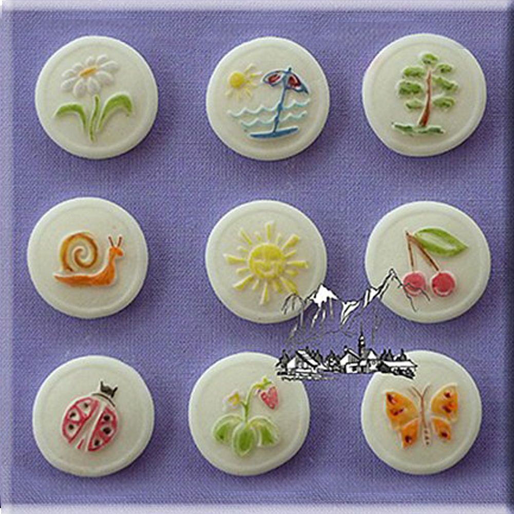 Cu ajutorul acestui mulaj obtineti foarte rapid 9 Medalioane cu decoruri diferite, avand ca tema Vara.