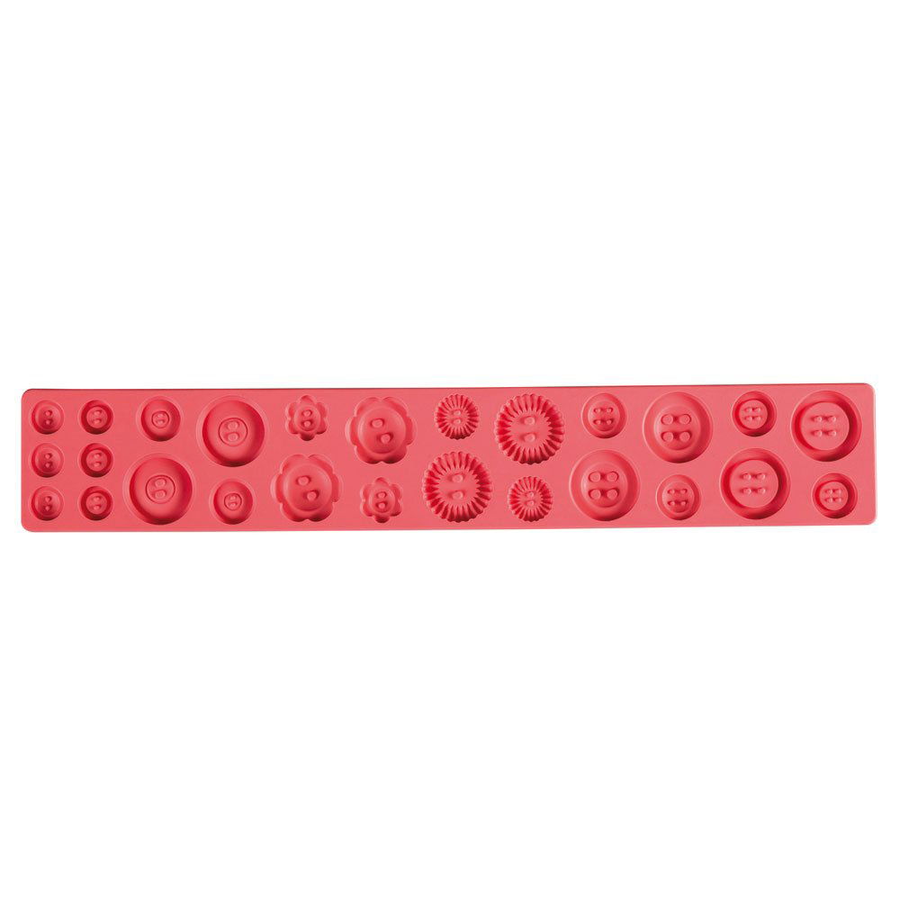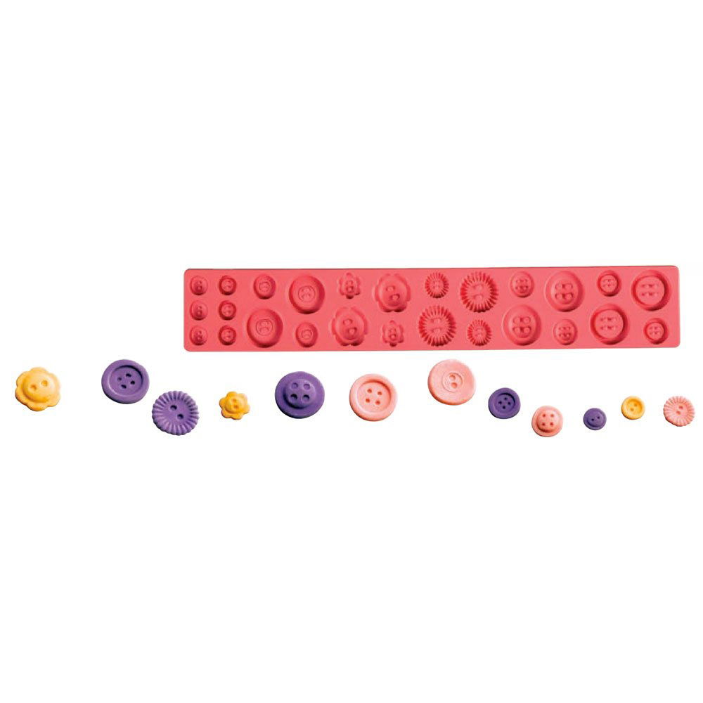 Cu ajutorul acestui mulaj obtineti, foarte rapid, decoruri cu nasturi, modele si dimensiuni diferite, pentru Torturi, Cupcakes sau alte tipuri de produse.