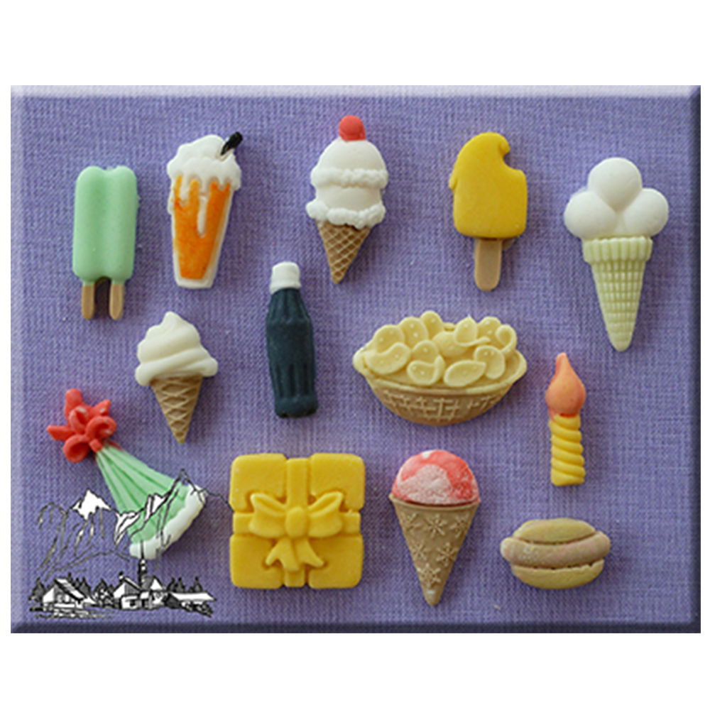 Cu ajutorul acestui mulaj obtineti, foarte rapid, 13 modele de decoruri pentru Torturi, Cupcakes sau alte tipuri de produse.