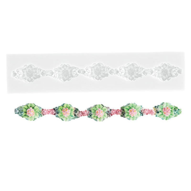 Cu ajutorul acestui mulaj obtineti, foarte rapid, decoruri pentru marginile torturilor sau pentru crearea altor tipuri de decoruri.