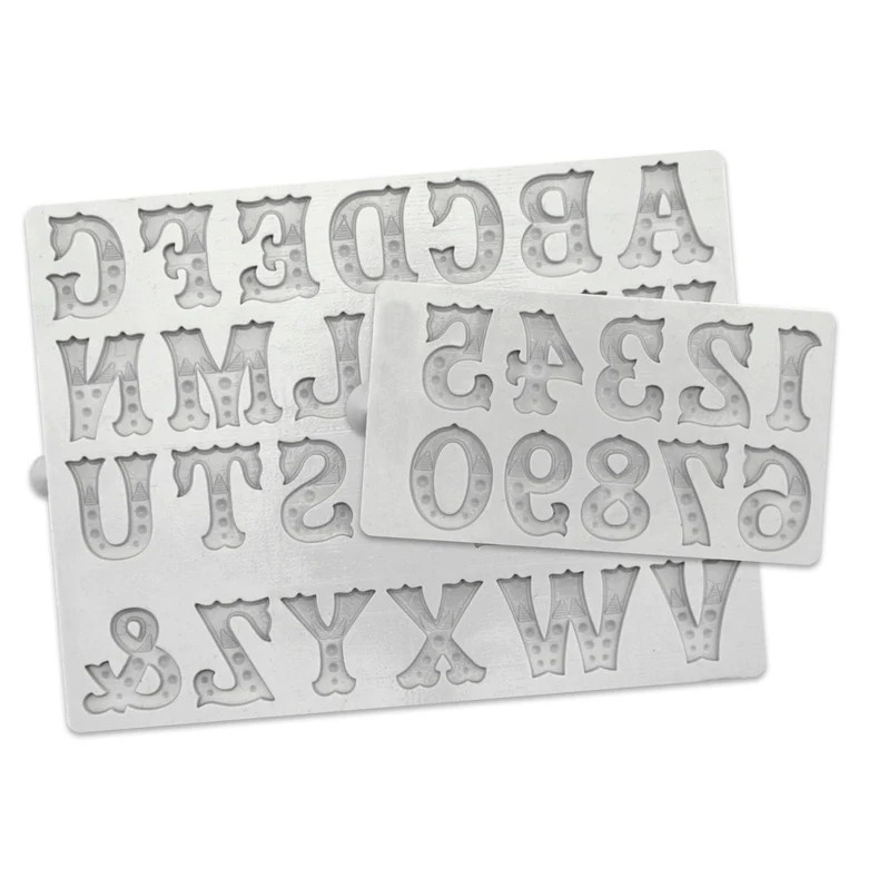 Mulaj din silicon alimentar, pentru realizarea literelor din pasta de zahar, fondant, martipan, ciocolata, izomalt...