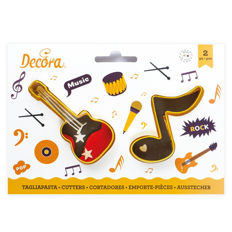 Decora Muzica, Chitara si Nota - Decupatoare Plastic Ø 7 si 9 x H 2.2 cm, Set 2 Buc